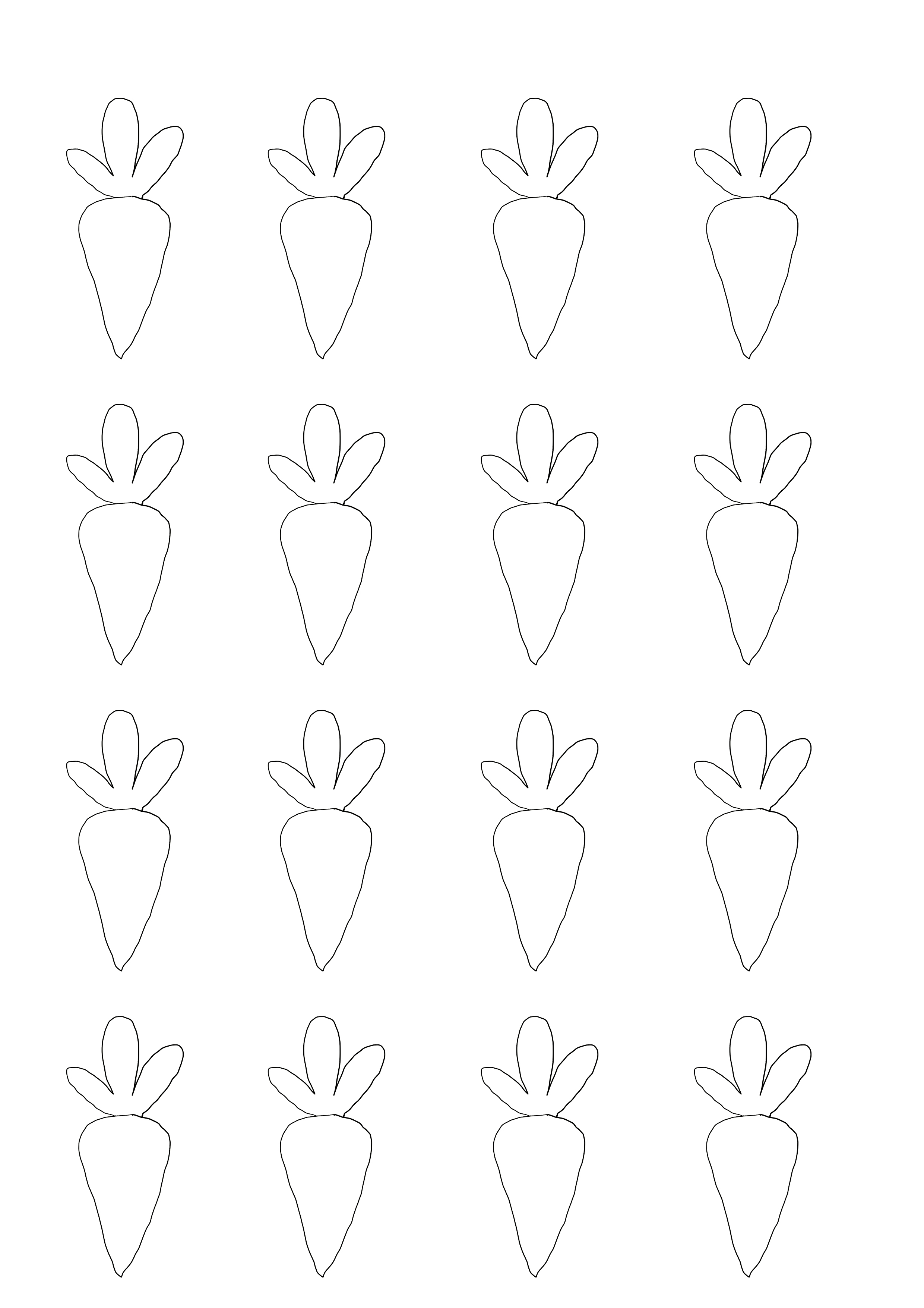 - Next, cut 1/16” from the tip of the green bag and trace over the leafy green part of the carrot template, just touching the orange carrot part.
