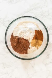 - Whisk flour, cocoa, spices, baking soda, and salt in a bowl.