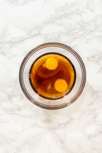 - In a separate bowl, whisk together the egg, maple syrup, and vanilla extract until smooth and fully combined.