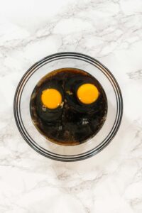 - In a separate bowl, whisk together the egg, molasses, and vanilla extract until smooth and well blended.
