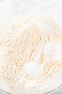 - In a large bowl, whisk together the flour, salt, baking powder, and cream of tartar. Set aside.