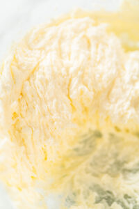 - In a hand mixer, beat melted butter, granulated sugar, and cream cheese until fluffy (2–3 minutes).
