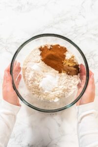 - Whisk flour, spices, baking soda, and salt in a bowl.