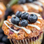 Bake the blueberry muffins for 18-20 minutes or until a toothpick inserted in the middle comes out clean. Let the muffins cool for about 5 minutes in the pan, then transfer them to a cooling rack to cool completely before topping.