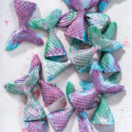 When the chocolates are set, carefully pull the edges of the silicone mold to gently separate from the mermaid tail candies, then carefully pop the candies out from the molds. Try not to handle the homemade candies with your bare hands too much as the heat from your skin can make the chocolates melt.