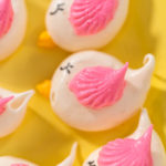 Then, make the same dollop and swoop motion on top of the bodies with the pink meringue to make the wings.