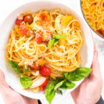 This pasta is best served hot and doesn’t keep very well in the fridge as leftovers. I’d recommend eating all of the pasta right after cooking.