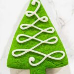 Starting at the top of each tree-shaped cookie, pipe one continuous motion down to the bottom in a zigzag or gentle wave pattern.