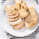Finally, slice the cooked chicken breasts, serve and enjoy!