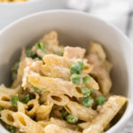Add the cooked penne pasta to a large mixing bowl.