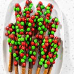 Once the pretzel rods have hardened, you can serve them on a large serving plate and enjoy.