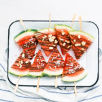 Prepare your chocolate in a Wilton Candy Pot by melting the chocolate along with the coconut oil. When the chocolate is fully melted, drizzle the chocolate over the watermelon wedges.
